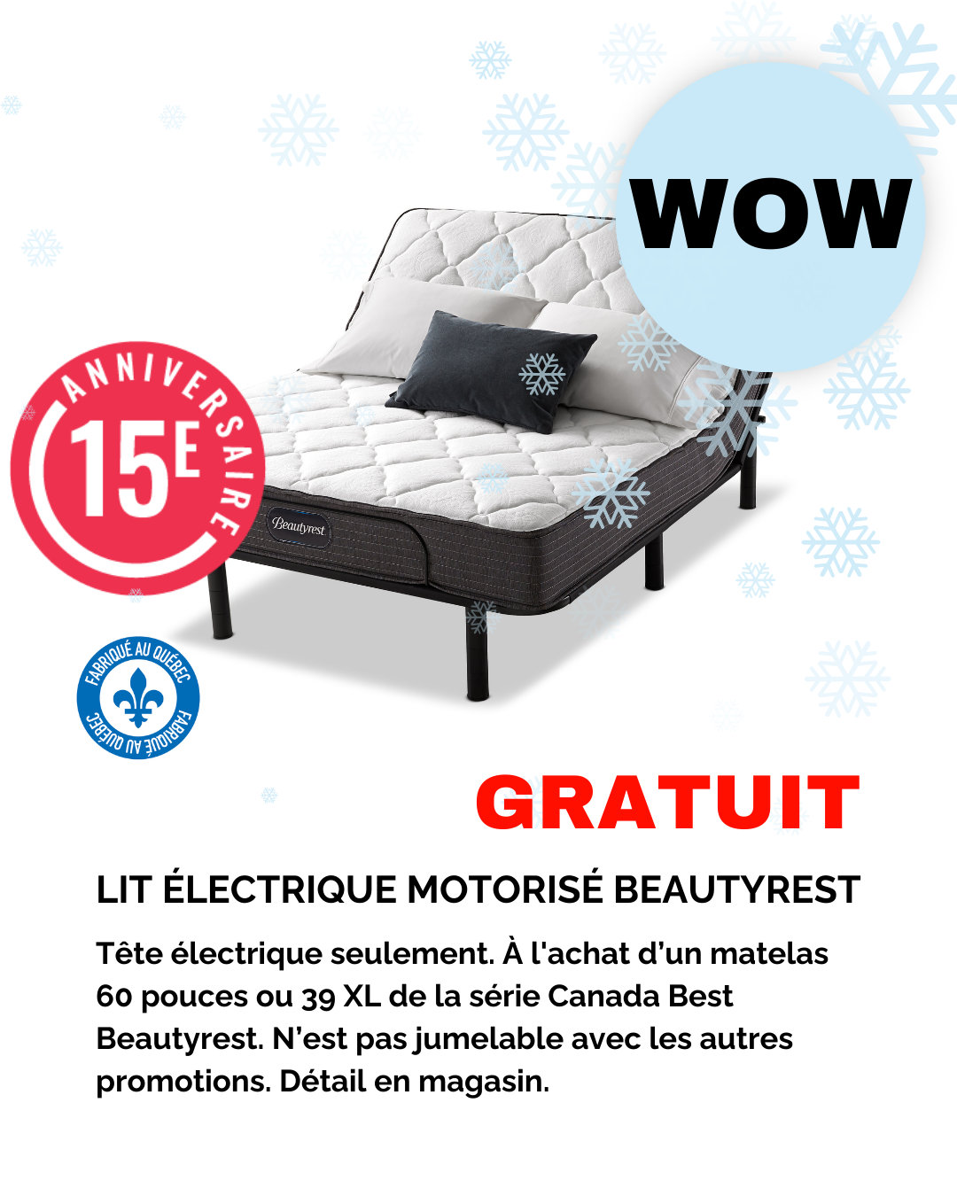 Un des plus grands choix de lits électriques motorisés au Québec et nos conseillers ont été formés pour répondre à vos questions.